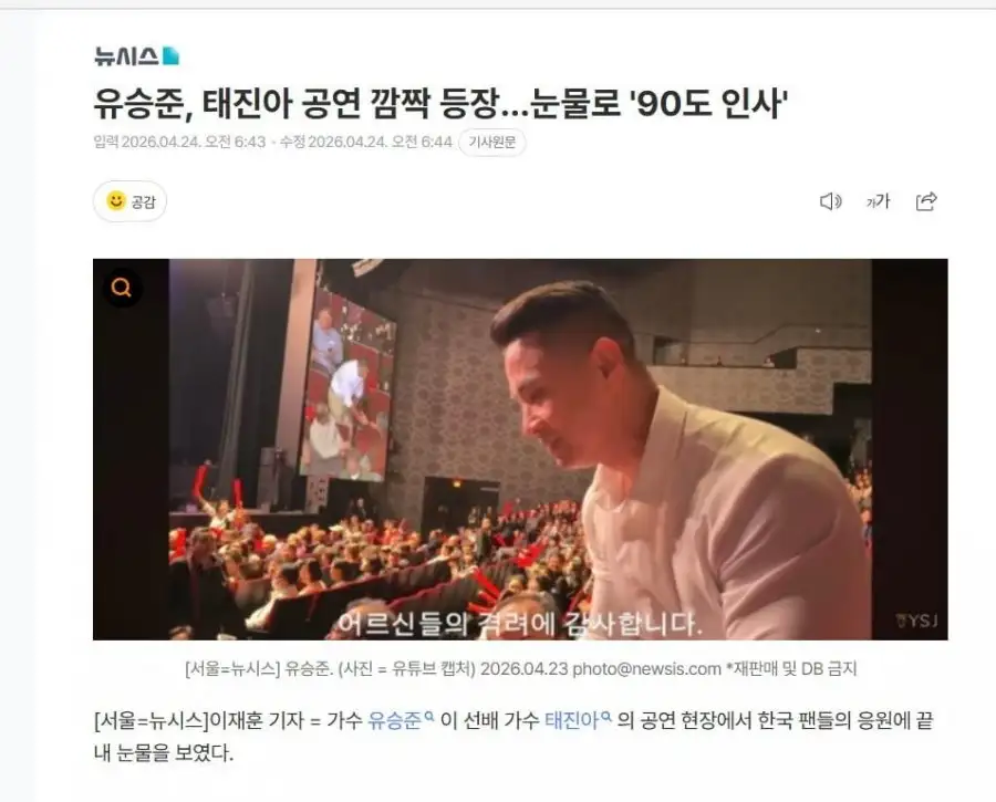 추천 댓글 공유 신고태진아 미쳤네요수푸얀2026-04-23 15:43:58조회 95출처: ppomppu.co.kr https://m.entertain.naver.com/home/article/003/0013907060 역시나 간통해본 태진아 비호감답게 유승준도 공연 시키네요 끼리끼리 노네요 원문 보기